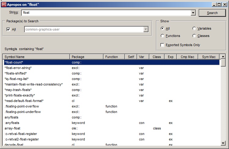 This command displays, in an HTML Browser, the permuted index to the Allegro CL documentation, permuted-index.html. This indexes each symbol and topic under each "word" of the symbol name or topic phrase. For example, the symbol effective-background-color can be found alphabetized by background-color and color in addition to effective-background-color.