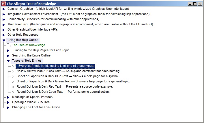 This command displays the Allegro Tree of Knowledge dialog, which displays a map to the available documentation in outline format.
