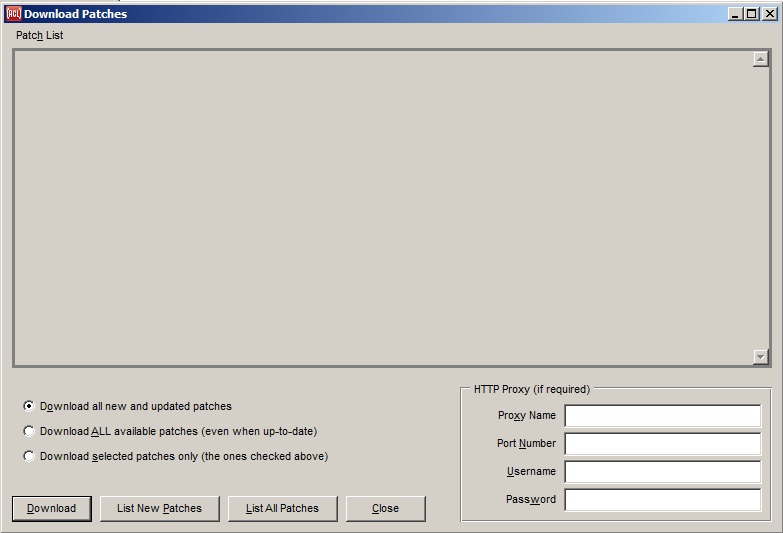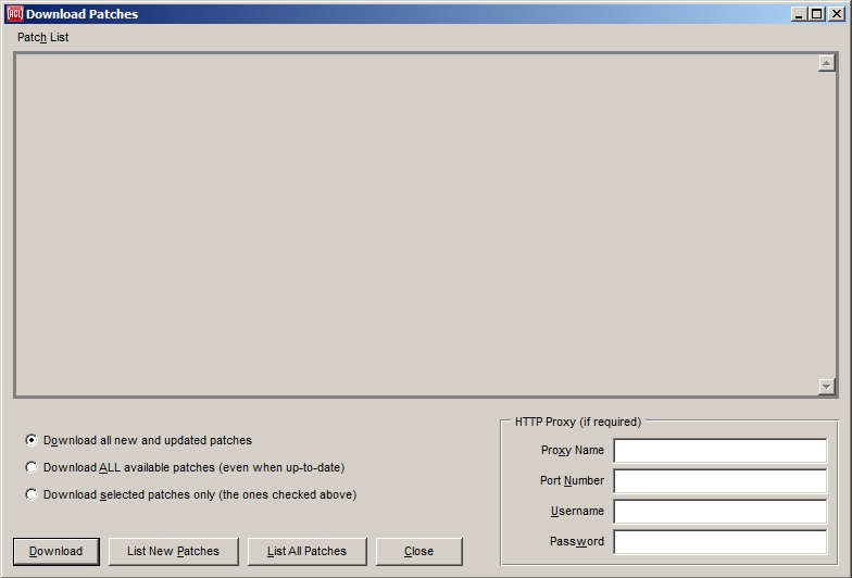 Displays the Download Patches dialog for downloading all or selected Allegro CL updates.
