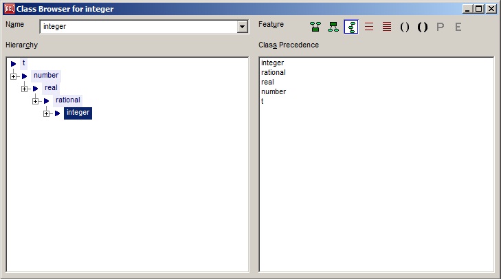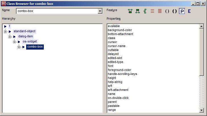 Displays the Class Browser dialog. If the current selection is a symbol naming a class, that class is browsed but the dialog displays whether or not it can determine the class of interest.