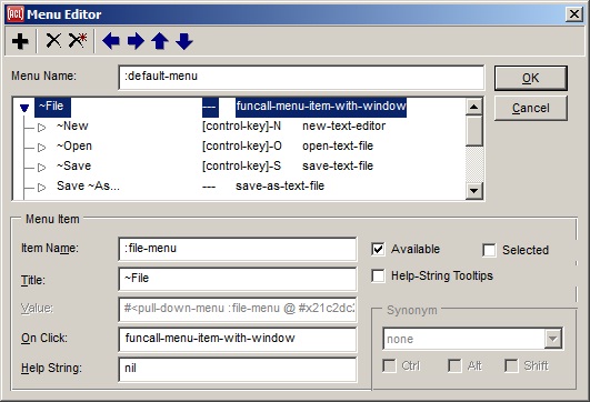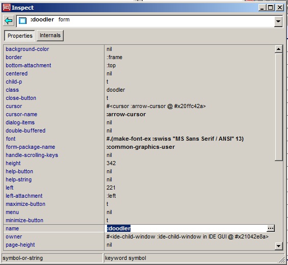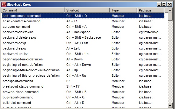 Windows on this menu will include forms and their running windows when the Run | Run Form command is used, any windows created programmatically by the user in the IDE when the parent arg defaults to (development-main-window system), and some of the standard IDE dialogs when the usual command for invoking the dialog causes effects other than simply exposing the dialog. The right-click shortcut menu on the IDE Background Window (when it is present) continues to list the windows that are accessible from the Windows menu as well as from other pull-down menus (especially the View menu), since it is an alternative to using the menubar altogether.