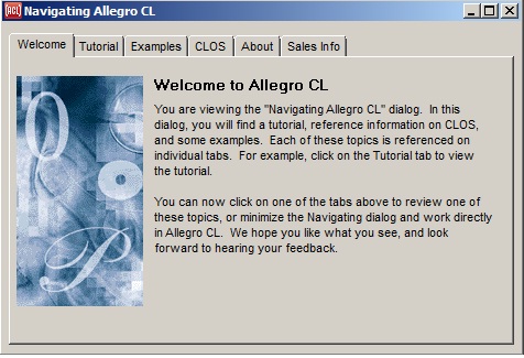 Displays a dialog with information about the current version of Allegro CL.