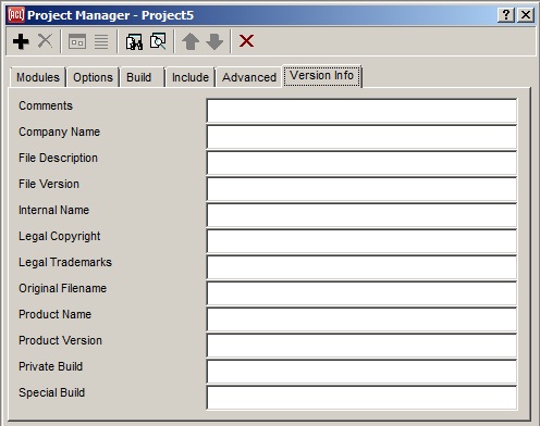 This tab is for use on Windows only (it is ignored on other platforms). It allows you to provide information which will be made the version info of your application is Windows tools the file manager.