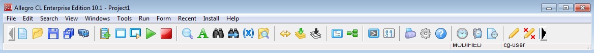 In the Allegro CL Development Environment, there can only be one project open at a time, which is the current project. The project window, with the menu bar, displays the name of the current project in its title: